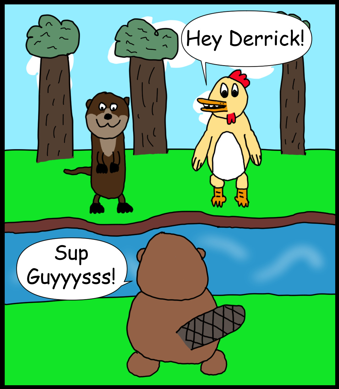 (Otto asks Derrick a question from across the river, Derrick takes the bait)