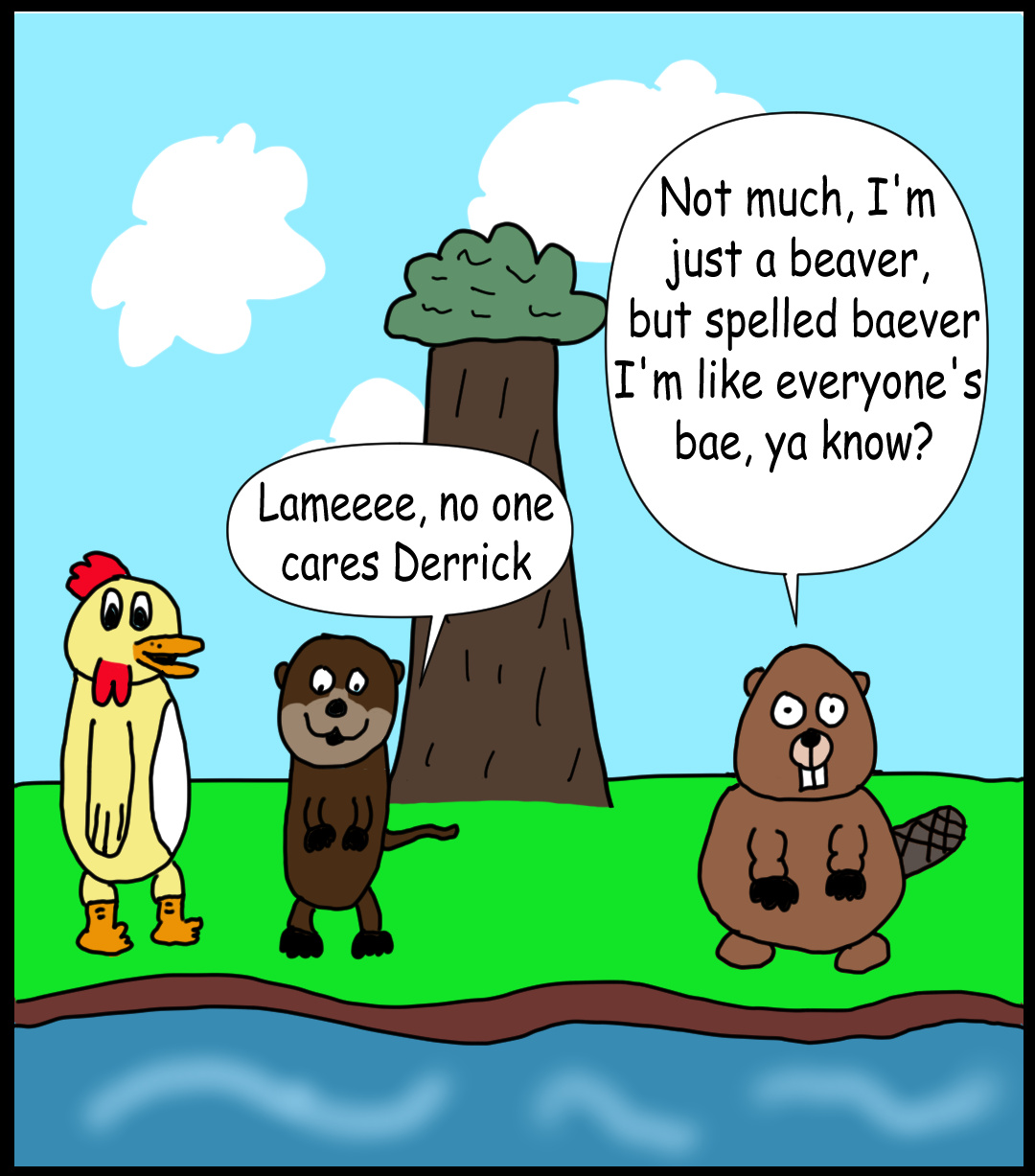 Derrick: “Yeah I build dams without hooman machinery, like that’s totally lame”