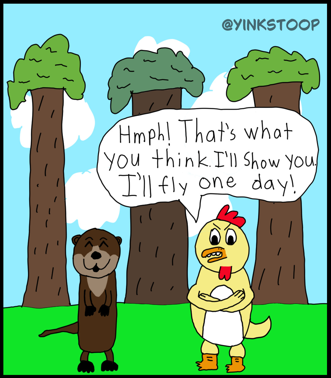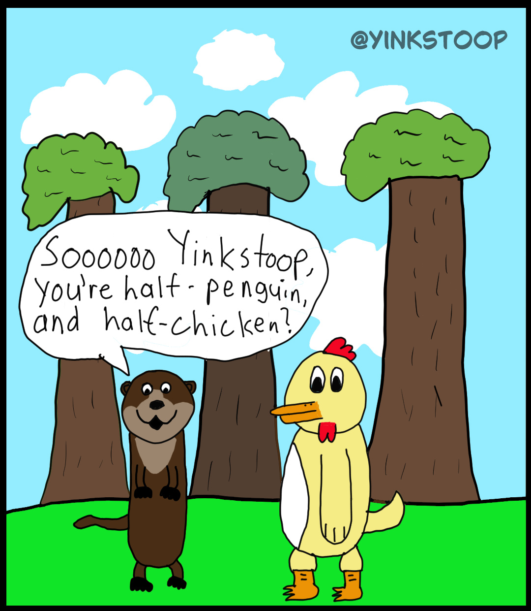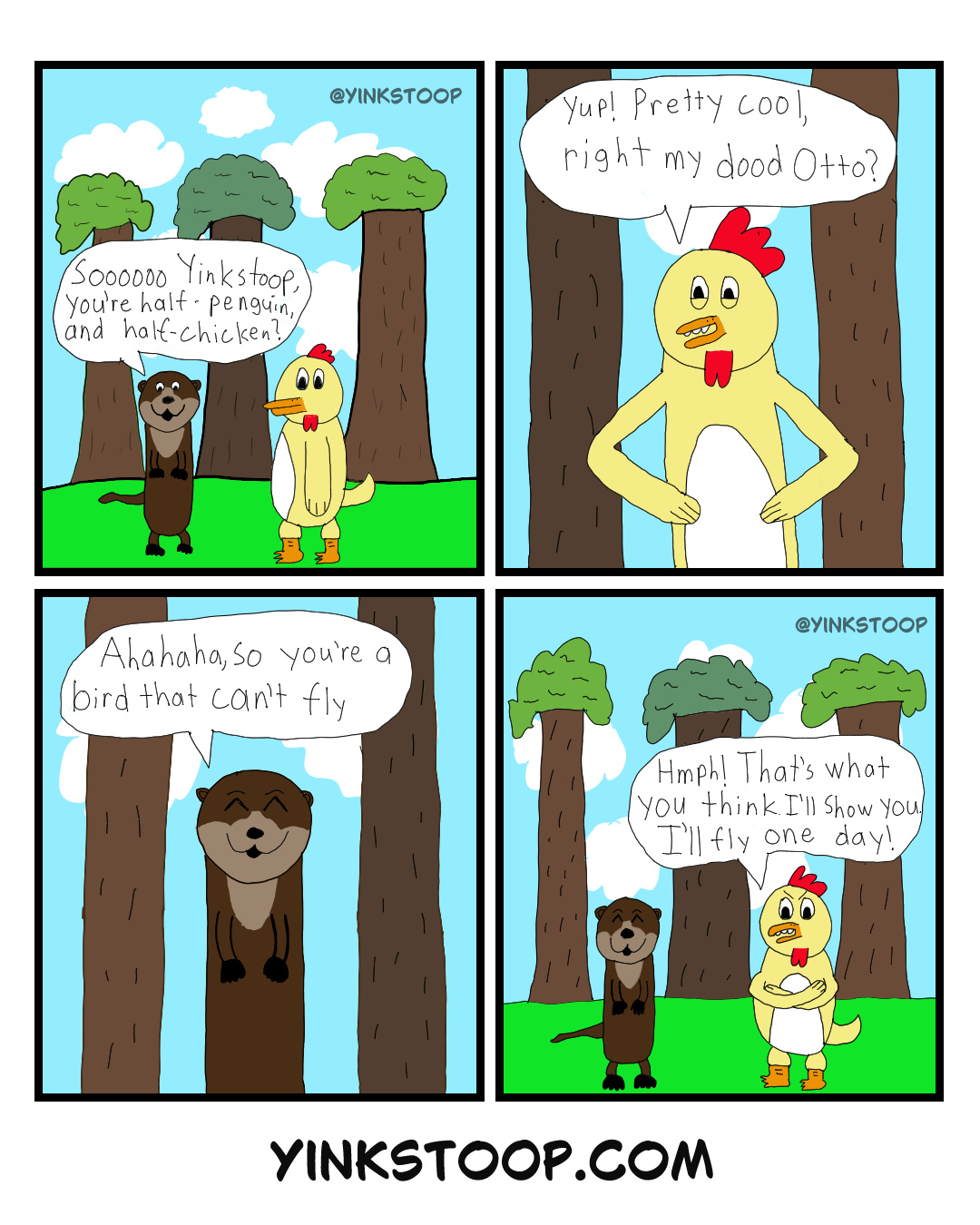 Otter: “Soooooo Yinkstoop, you’re half-penguin, and half-chicken?”